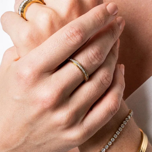 Pagamintas iš tvirto nerūdijančio plieno, todėl nebijo vandens, nesilupa, nekeičia spalvos. Cirkonio akmenukai saugiai įtvirtinti, tad žiedas išlieka prabangiai spindintis net po ilgo nešiojimo.