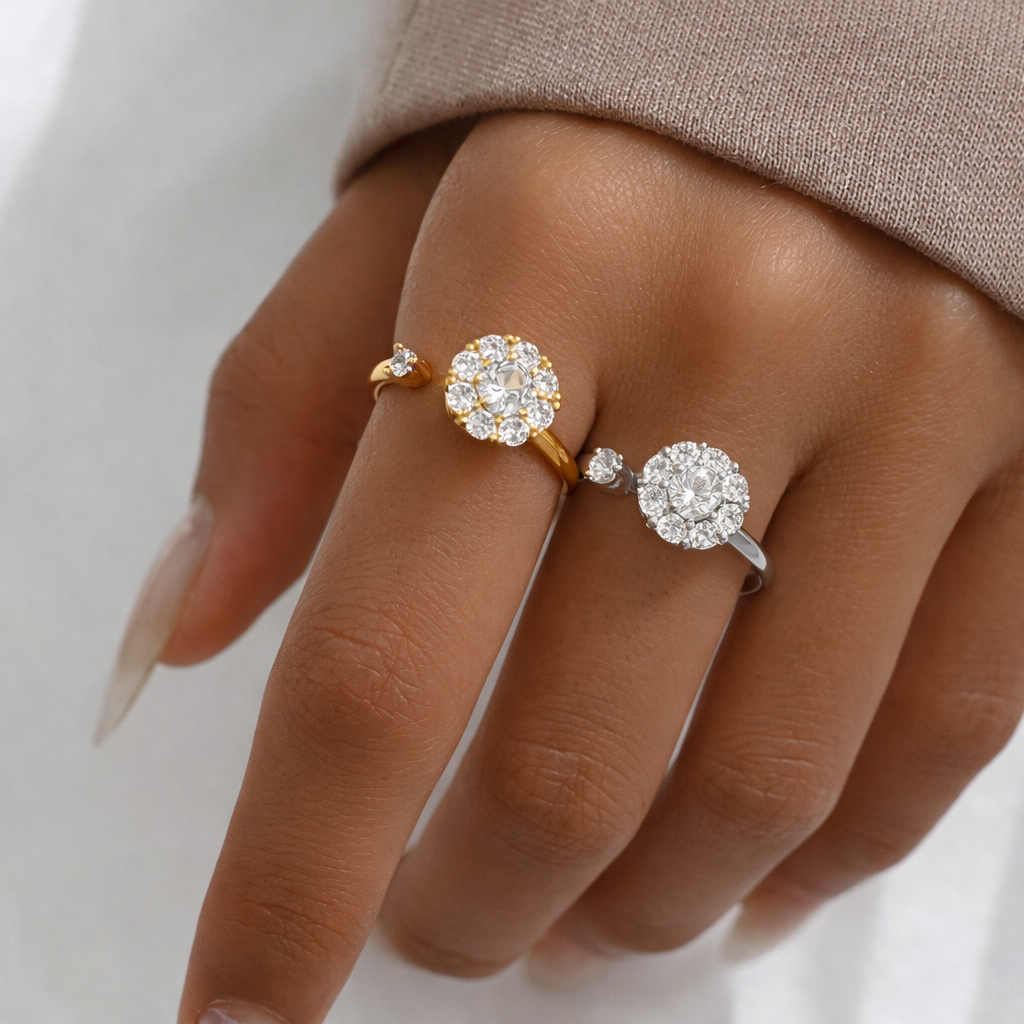 Pagamintas iš tvirto nerūdijančio plieno, todėl nebijo vandens, nesilupa, nekeičia spalvos. Cirkonio akmenukai saugiai įtvirtinti, tad žiedas išlieka prabangiai spindintis net po ilgo nešiojimo.