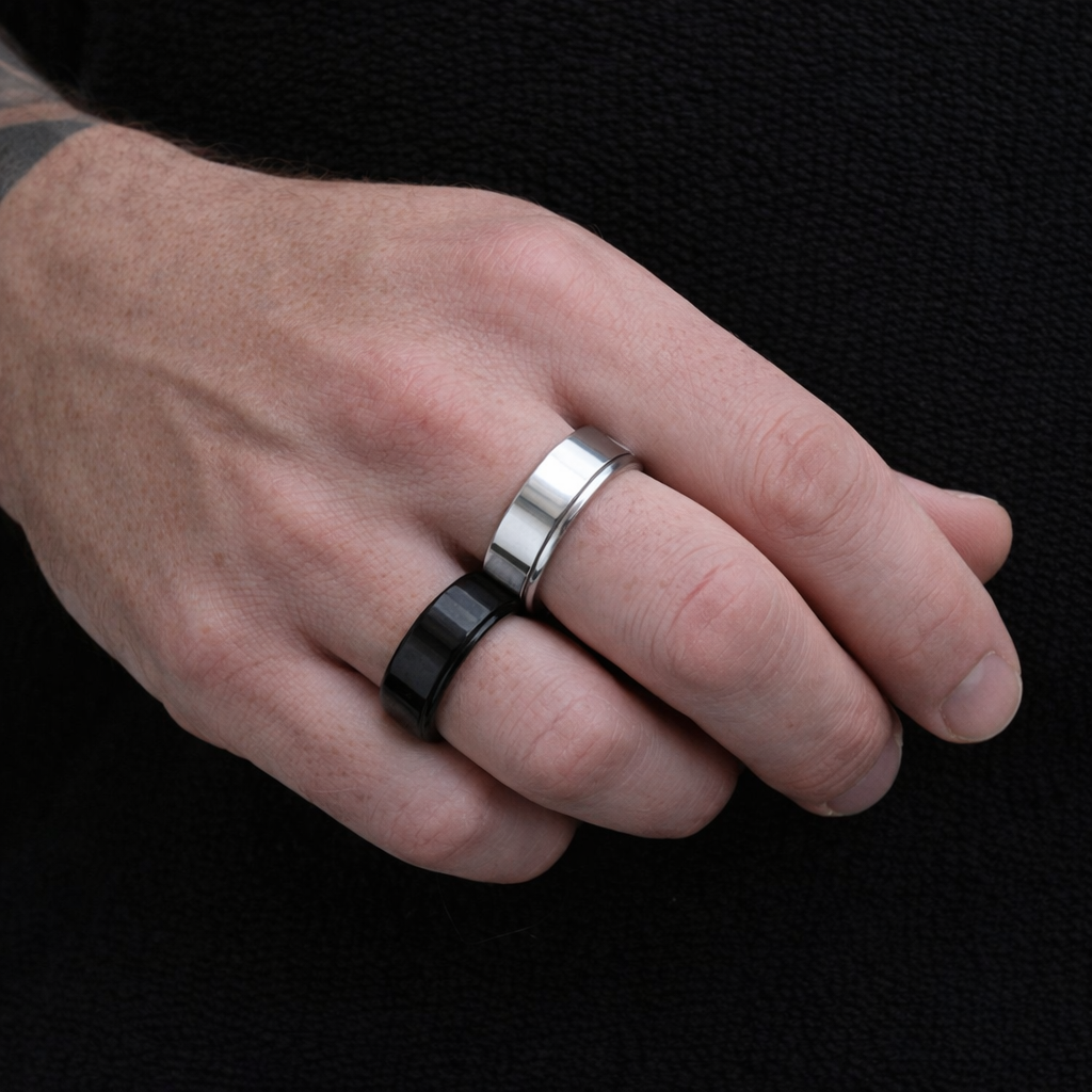 Atrask elegancijos ir ramybės derinį viename – šis nerūdijančio plieno žiedas sukurtas taip, kad ne tik puoštų, bet ir padėtų susikoncentruoti, atsipalaiduoti bei valdyti nerimą. Jo vidurinė dalis sukasi, todėl žiedą galima naudoti kaip anxiety/fidget aksesuarą – puikiai tinka tiems, kurie mėgsta sukioti, liesti ar spaudyti smulkius daiktus, kai jaučia stresą.